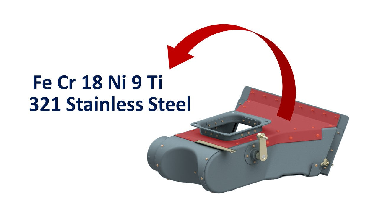 The upper airbox skin is fabricated out of 321 stainless steel to provide fatigue strength. Also, it is bonded with structural adhesive to the collar and the sides of the airbox.