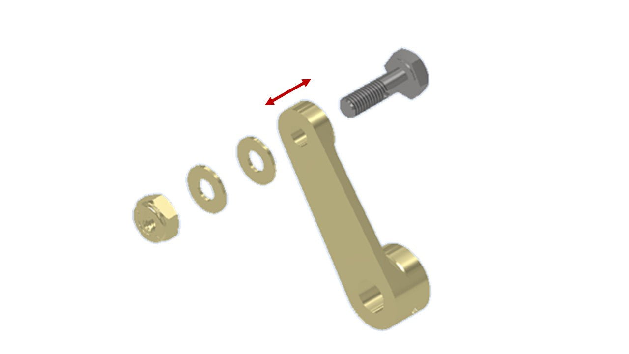 The shaft is made from corrosion resistant steel and the troublesome needle bearing is replaced by a more robust oil-impregnated bronze bushing which eliminates the risk of needle ingestion by the engine. The bearing area on the bronze bushing is increase to distribute the forces.