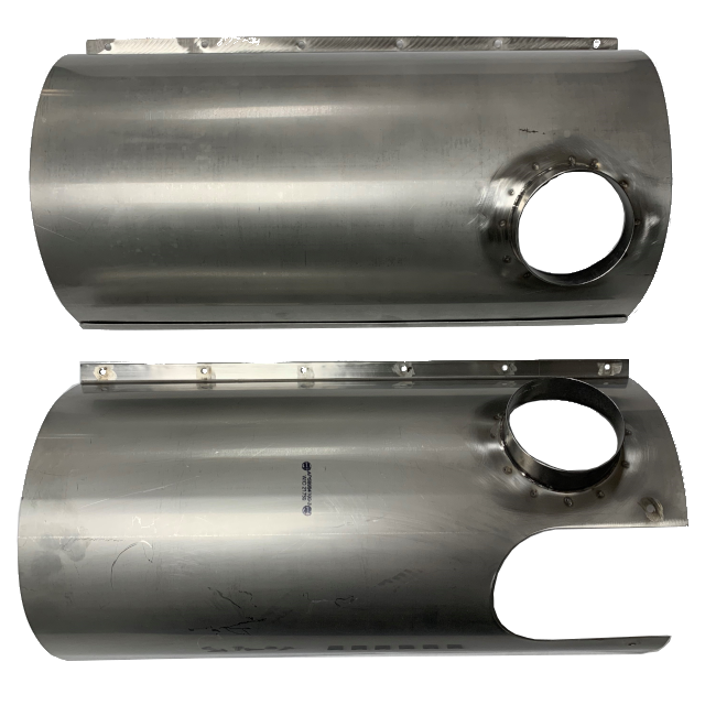 Muffler shroud assembly is manufactured by Air Plains Services. Muffler shroud includes tinnermans and screws as pictured in product image.